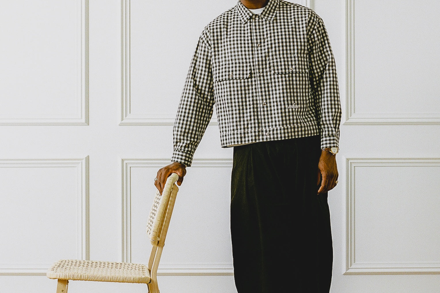 Gingham Check Trucker Jacket - Onyx Black/Ivory