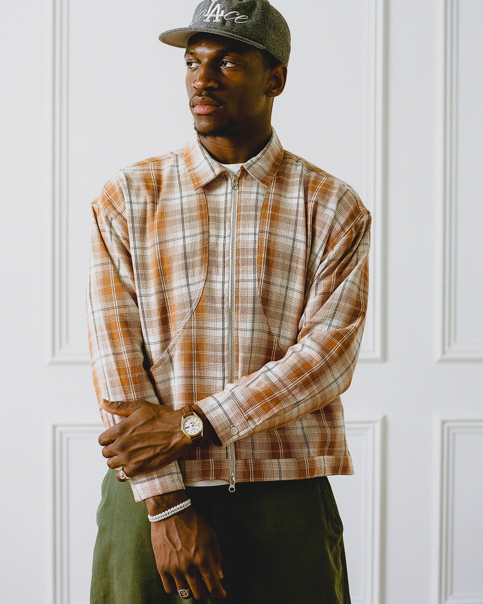 Check Curve Pocket Zip Jacket - Rust Orange/Ivory