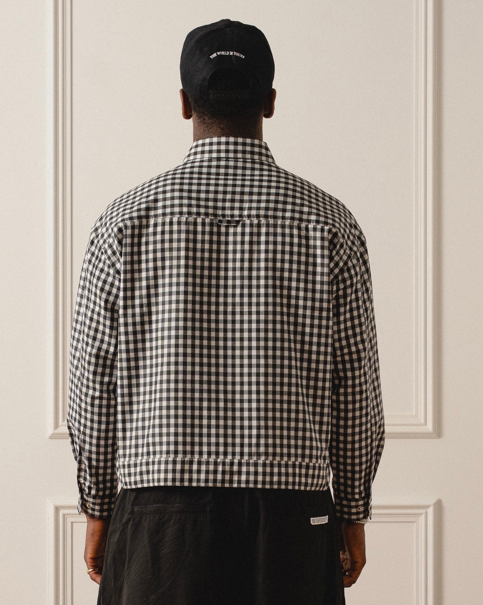Gingham Check Trucker Jacket - Onyx Black/Ivory